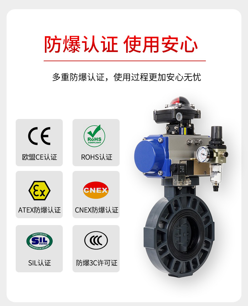 气动PVC对夹蝶阀 流量控制