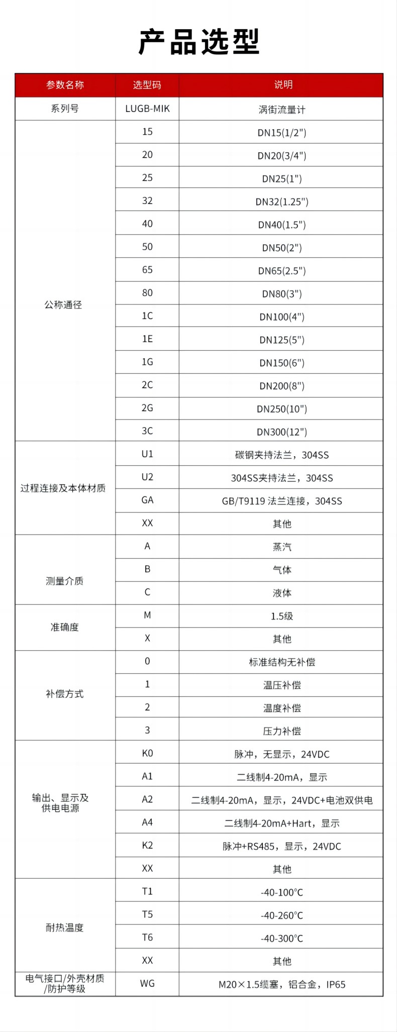 LUGB-MIK涡街流量计 通用常规款