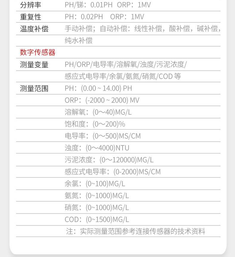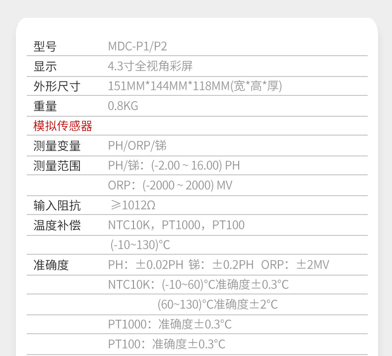 MDC-P1/P2是一款先进的智能在线多参数控制器,最多可支持 2 路,其第 1 通道的混合模式功能允许连接模拟或数字传感器,第 2 通道连接数字传感器,该控制器可测量 pH、ORP、电导率、溶解氧、浊度、污泥浓度、余氯、氨氮、硝氮、COD 等多种参数。其连续监测的数据通过变送输出连接 DCS 系统或通过 RS485 接口用 Modbus-RTU 协议与计算机通讯,实现远传监控与记录,也可以控制清洗系统或泵。控制器可选配NB-IoT 无线传输模块,通过安装仪表堂堂 APP,用户可在移动端了解现场情况。该控制器广泛应用于火电、化工化肥、冶金、环保、制药、生化、食品、污水、半导体和自来水等各个行业。