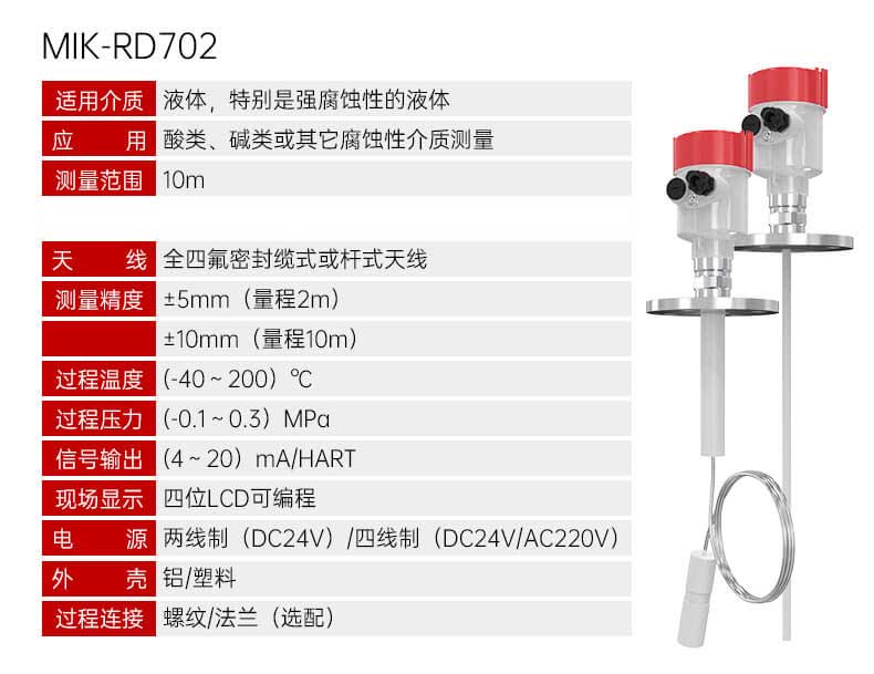 MIK-RD902/902T雷达液位计天线发射极窄的微波脉冲