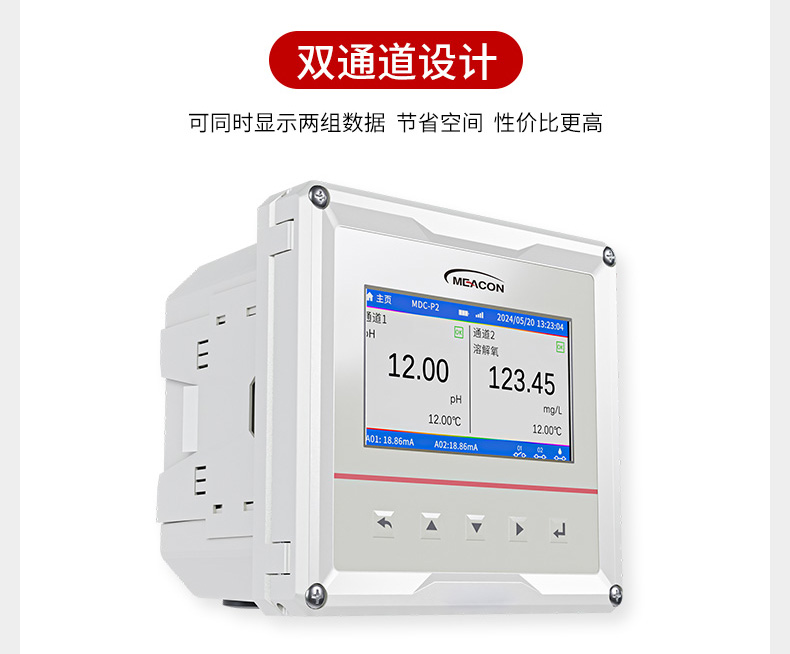 MDC-P1/P2是一款先进的智能在线多参数控制器,最多可支持 2 路,其第 1 通道的混合模式功能允许连接模拟或数字传感器,第 2 通道连接数字传感器,该控制器可测量 pH、ORP、电导率、溶解氧、浊度、污泥浓度、余氯、氨氮、硝氮、COD 等多种参数。其连续监测的数据通过变送输出连接 DCS 系统或通过 RS485 接口用 Modbus-RTU 协议与计算机通讯,实现远传监控与记录,也可以控制清洗系统或泵。控制器可选配NB-IoT 无线传输模块,通过安装仪表堂堂 APP,用户可在移动端了解现场情况。该控制器广泛应用于火电、化工化肥、冶金、环保、制药、生化、食品、污水、半导体和自来水等各个行业。